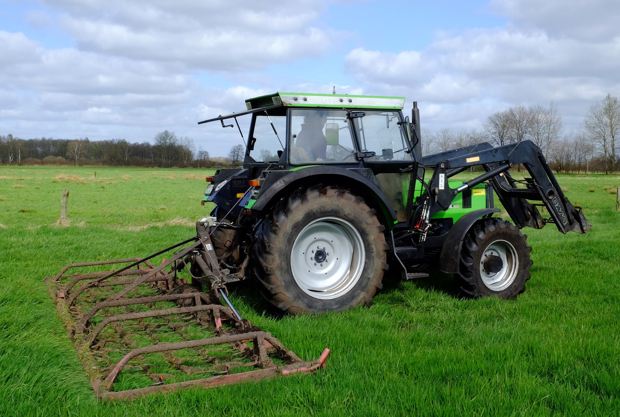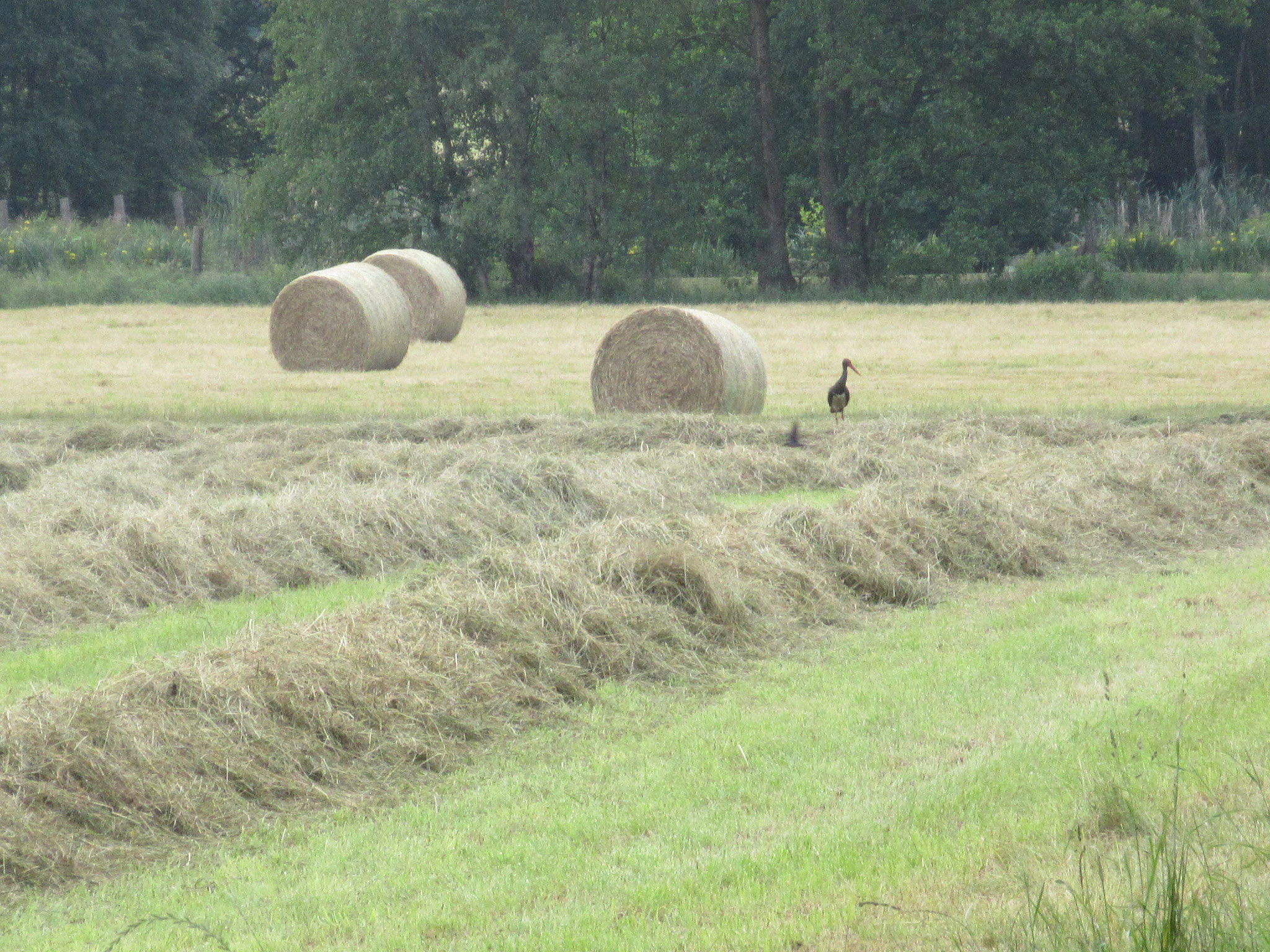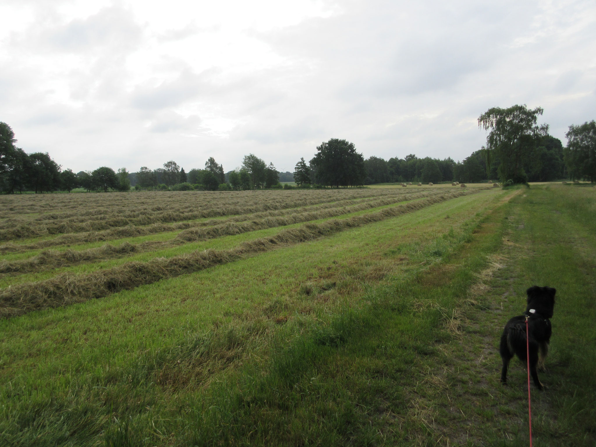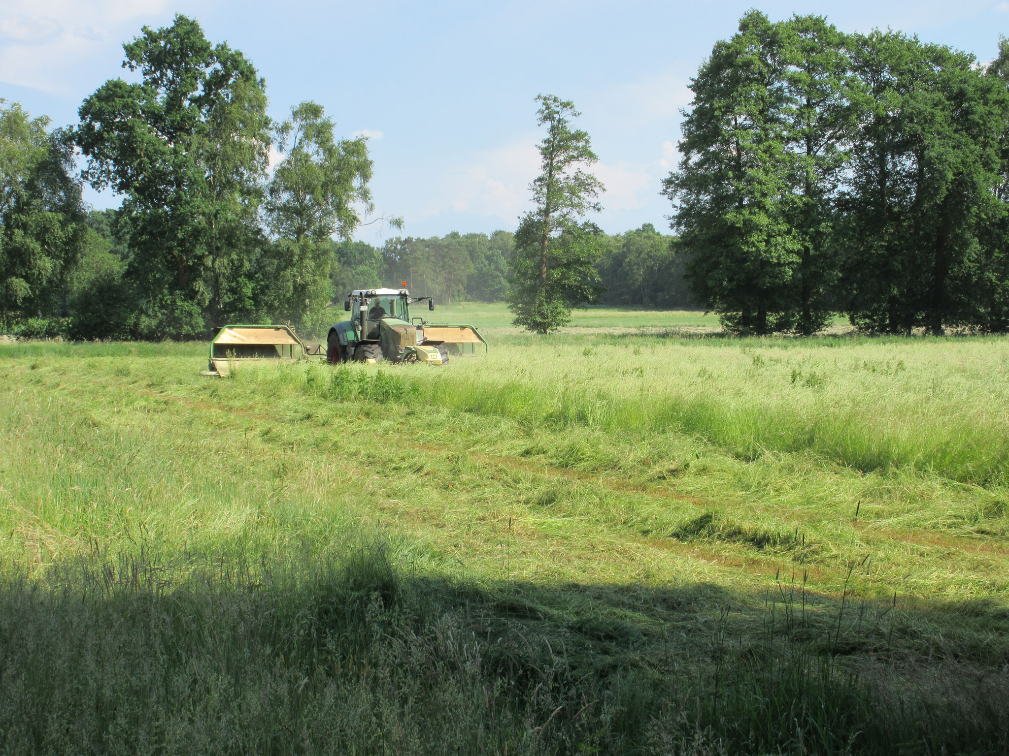 Neben unseren Ausläufen und Weiden gehören 8 ha Wiesen zu unserem Hof. Von diesen gewinnen wir alljährlich unseren Heubedarf. Das Heu wird in Rundballen offen und trocken gelagert.